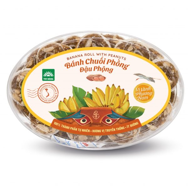 Đây là phiên bản truyền thống nhất, với mứt chuối được kết hợp cùng đậu phộng rang giòn. Vị ngọt dịu của chuối, béo bùi của đậu phộng, cộng với lớp bánh phồng giòn tan sẽ mang đến cho bạn một cảm giác trọn vị.