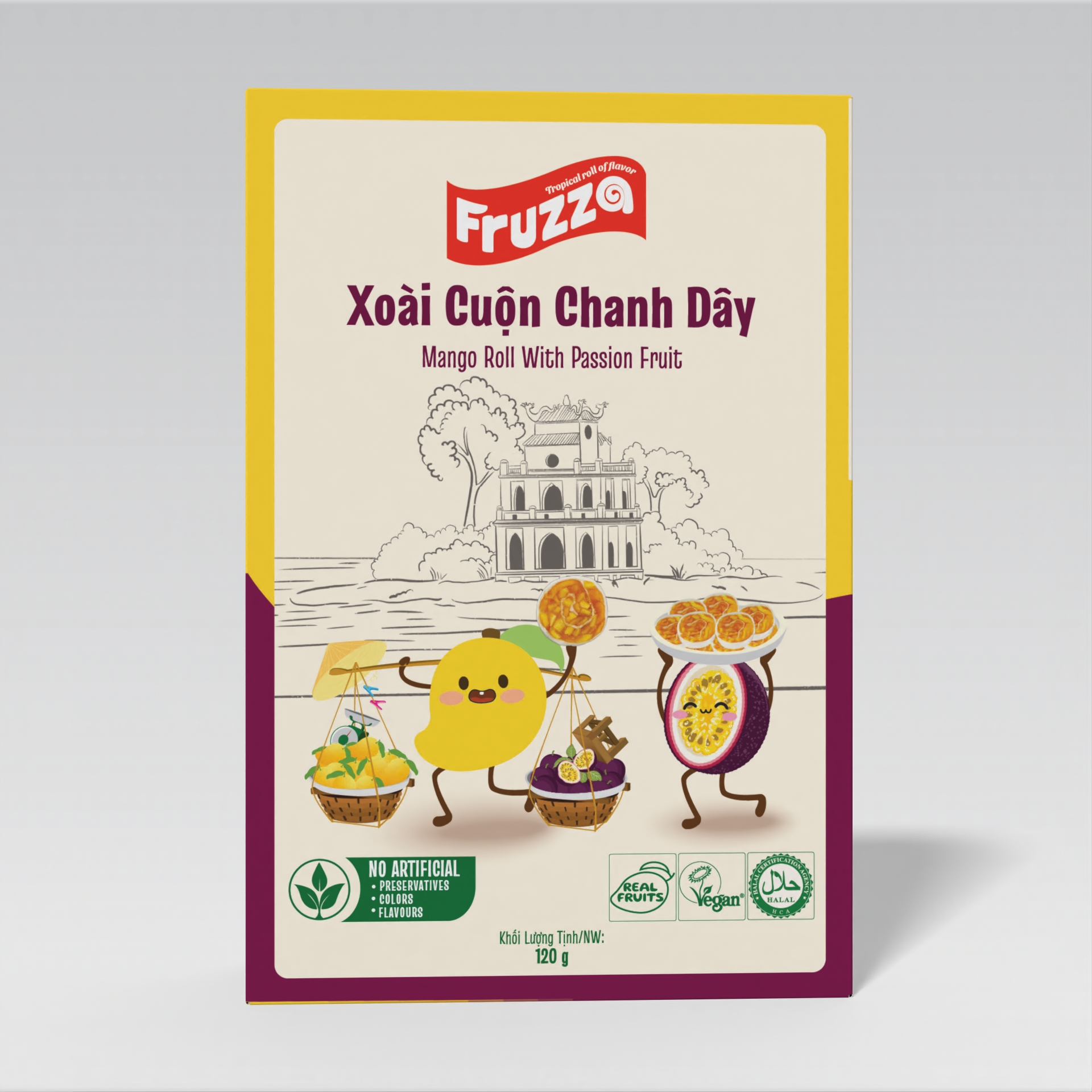 Fruzza packaging is modern and convenient for everyday use. The design features a traditional street vendor scene by Hoàn Kiếm Lake, evoking the calm and simplicity of old Hanoi.