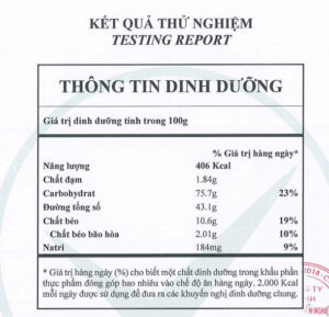 BẢNG THÀNH PHẦN DINH DƯỠNG: