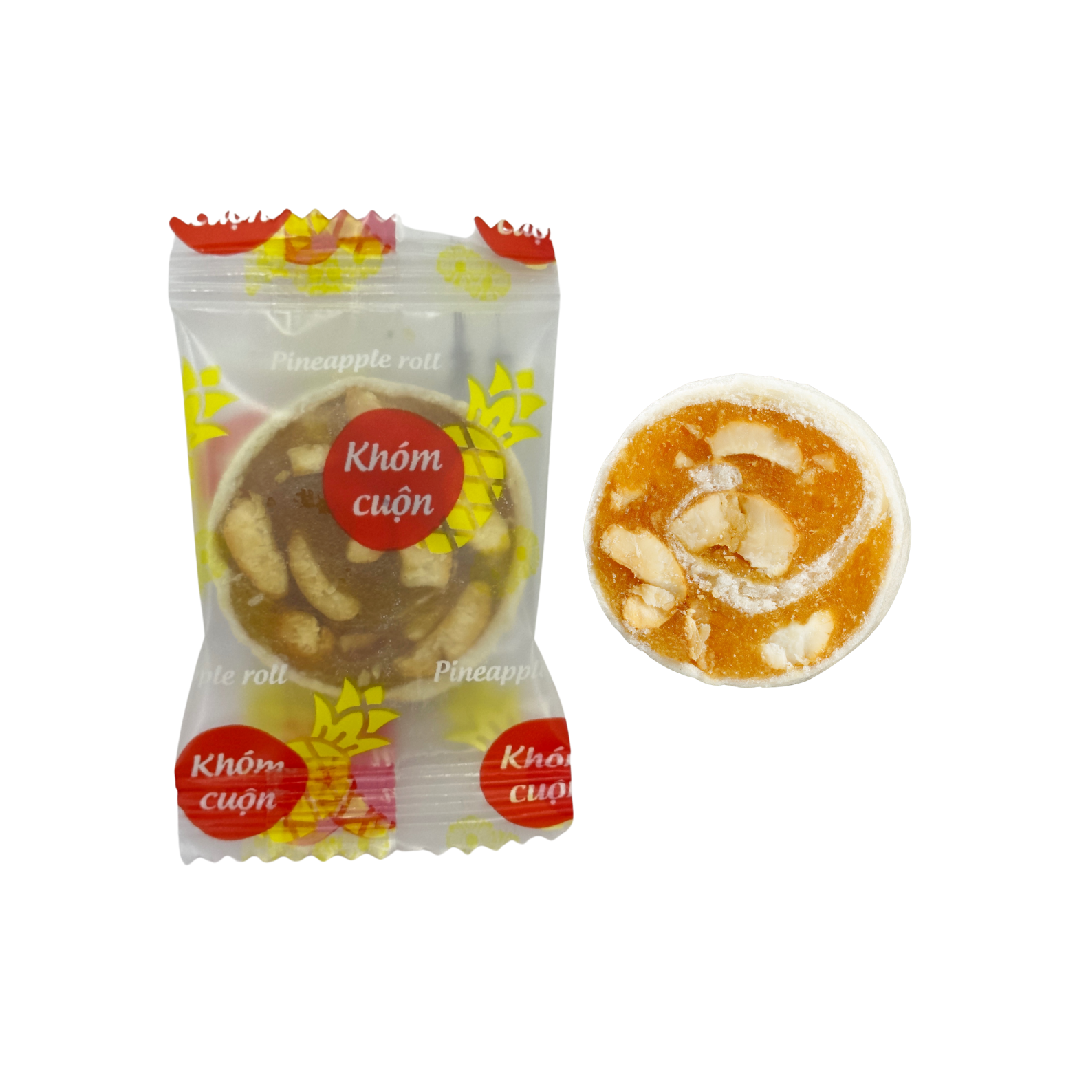 Khóm Cuộn Hạt Điều Fruzza là sự kết hợp giữa khóm chín tự nhiên thanh mát và hạt điều rang giòn béo bùi. Lớp khóm dẻo mềm cuộn hạt điều tạo cảm giác mềm – giòn, vị ngọt dịu dễ ăn, không ngấy. 🍍